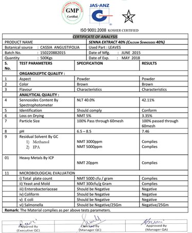 SENNA LEAF EXTRACT 40% (Calcium Sennosides 40%)BP