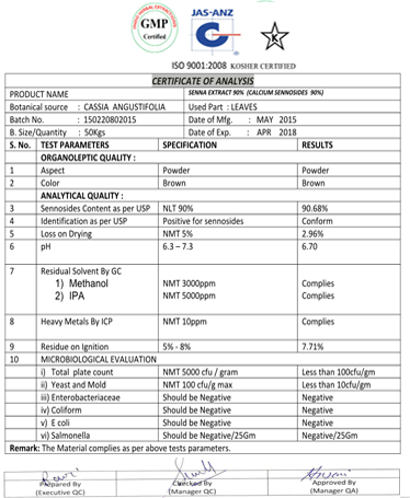 SENNA LEAF EXTRACT 90% (Calcium Sennosides 90%)BP